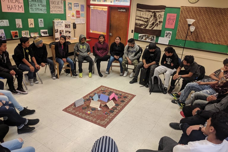 Through this work, Return to the Roots facilitates practices that help both youth and adults access their inner light, build healthy relationships, address harm when it happens, and engage in daily work to create spaces of safety and belonging.