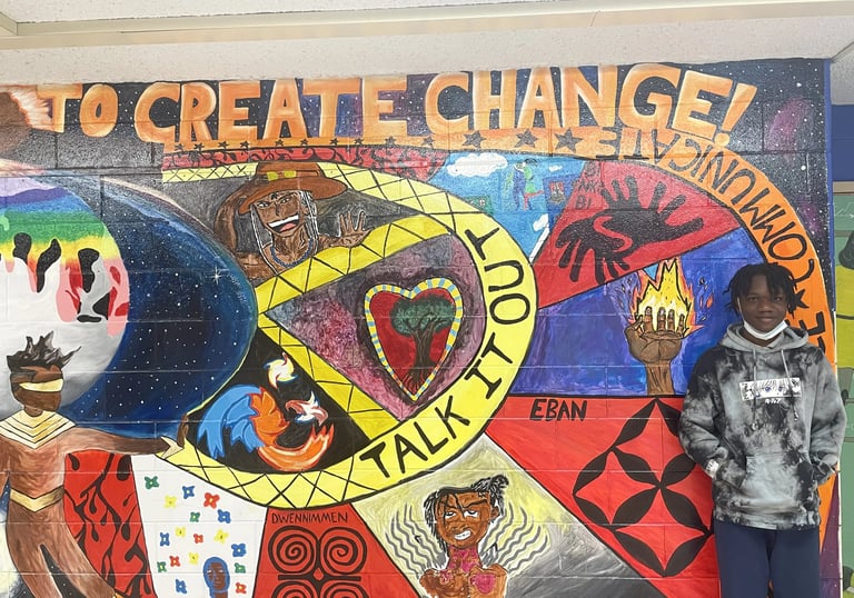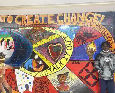 Brighid's work at Kellman Elementary School alongside Visual Artist + Muralist, Rhonda Gray